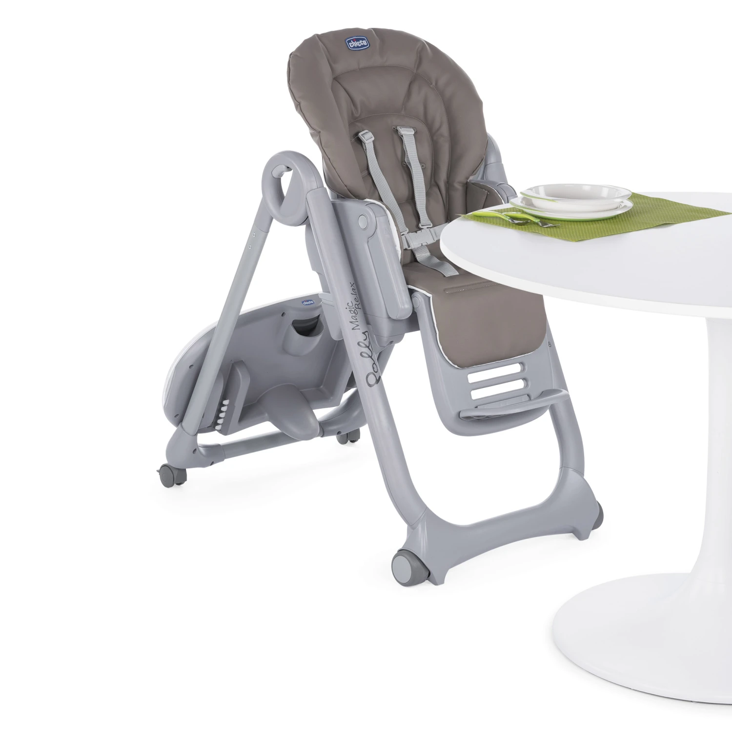 Polly Magic Relax est la nouvelle chaise haute de Chicco. Elle garantit un confort optimal pour bébé grâce à son dossier inclinable sur plusieurs positions et son réducteur doux et confortable.