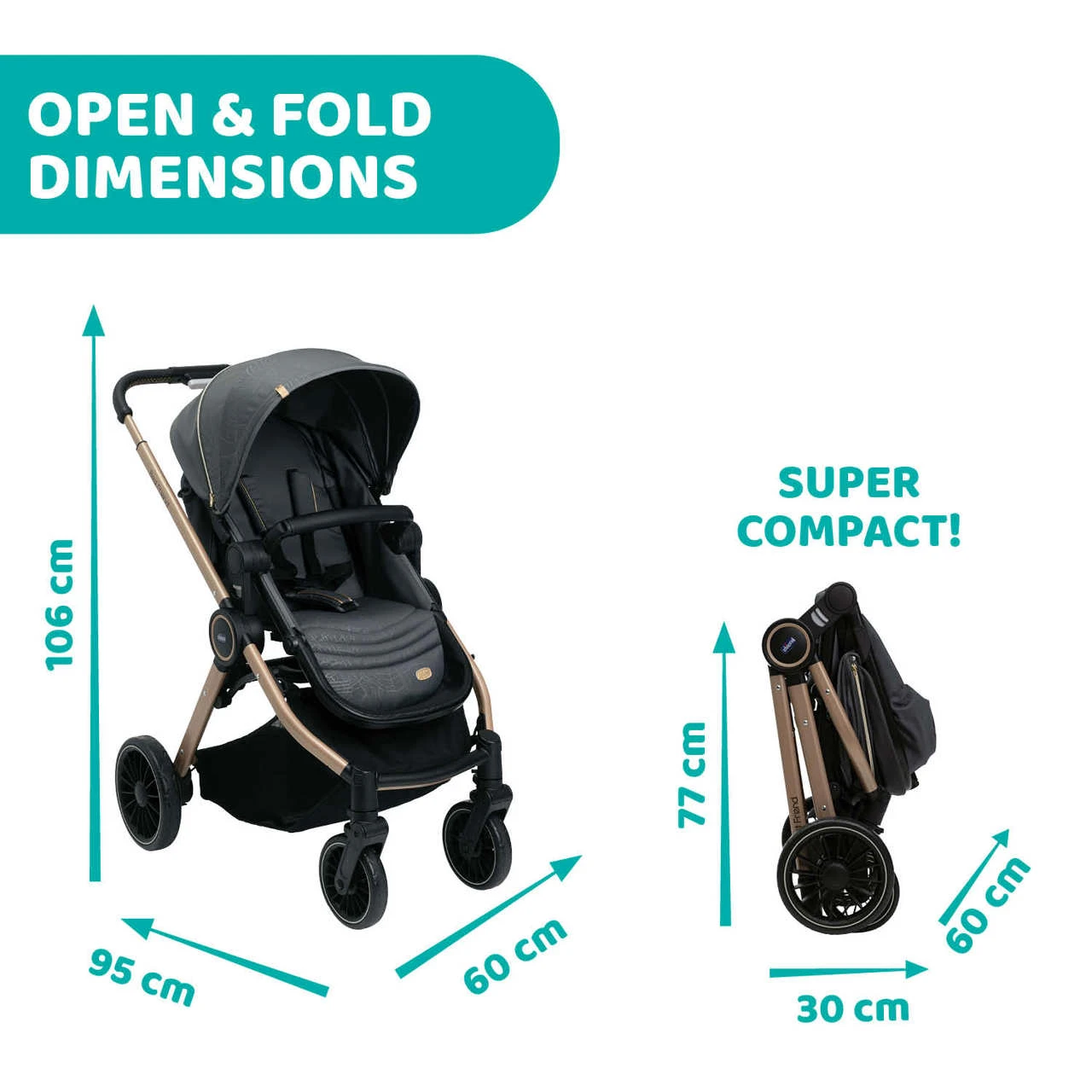 dimensions en position fermée: 30.0 x 60.0 x 77.0 cm