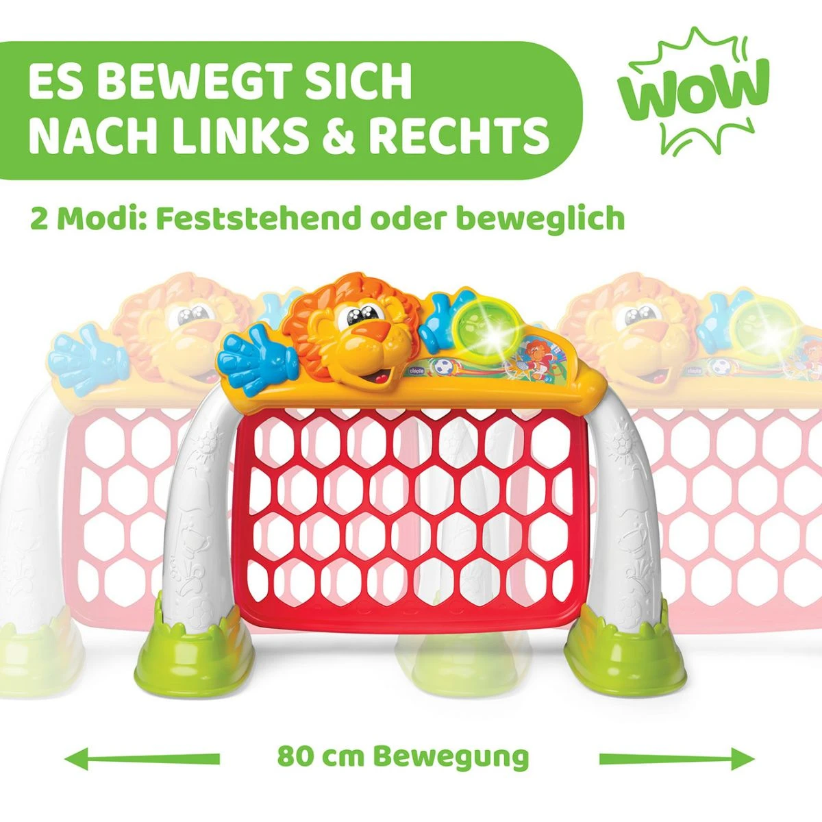 Un but électronique pour les fans de football avec une caractéristique excitante : il bouge de gauche à droite pour rendre le but plus difficile à marquer ! Détecte lorsqu’un enfant marque un but et émet une musique et des sons d’encouragement.
