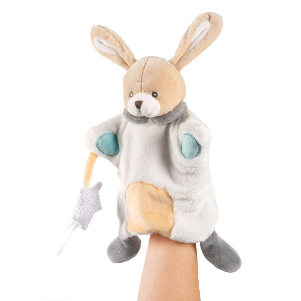 Très douce et mignonne petite marionnette en forme de lapin. Elle favorise l’interaction et le jeu entre vous et votre enfant !