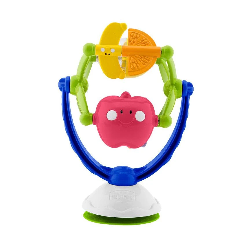 Doté d’une ventouse, le jouet se fixe facilement au plateau de la chaise haute.