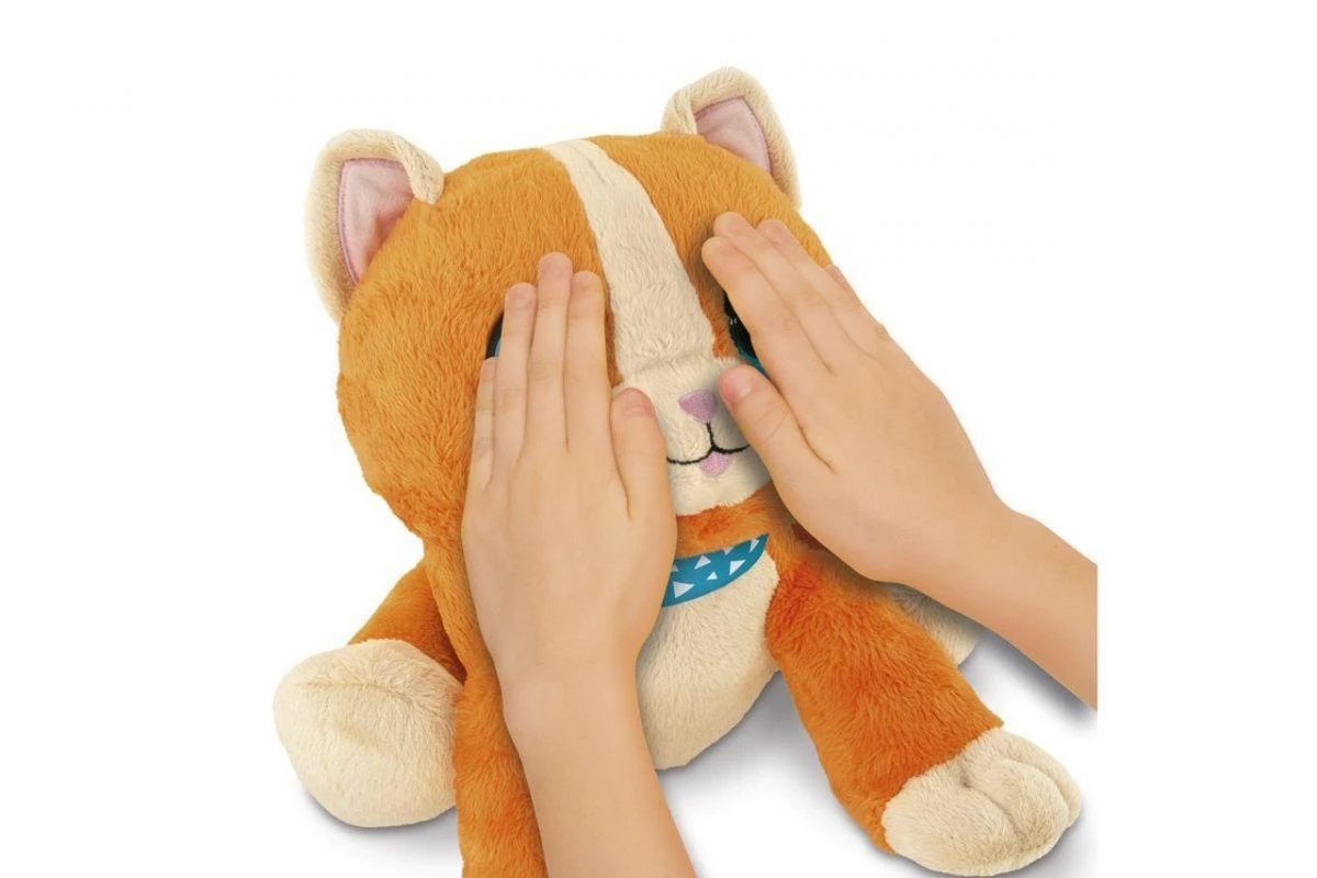 Kitty le chaton câlin est la peluche interactive câline qui joue à cache-cache avec votre enfant : couvrez les yeux du chaton, il vous cherchera avec des phrases et des sons adaptés à son humeur. Lorsque vous découvrez les yeux, le chaton est heureux et rit !