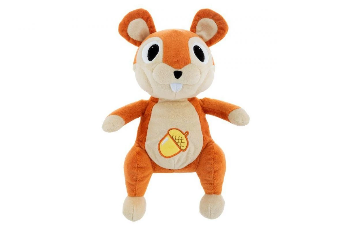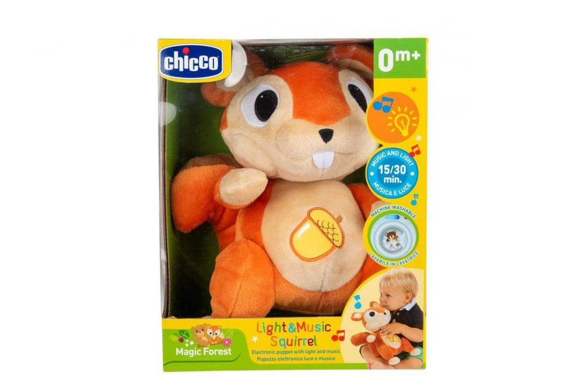 Douce peluche écureuil de 30 cm avec lumière et mélodies pour le divertissement et la détente de l’enfant.
