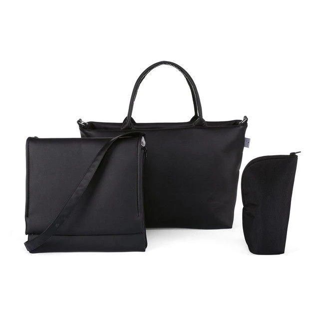 - Le mini sac pour les indispensables, le porte-bouteille thermique pour les biberons, un grand sac féminin avec poches et crochets pour la poussette.