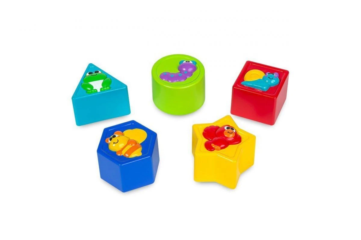 Un composant électronique central (fleur) : un trieur de formes avec 5 formes 3D représentant des animaux en 3D.