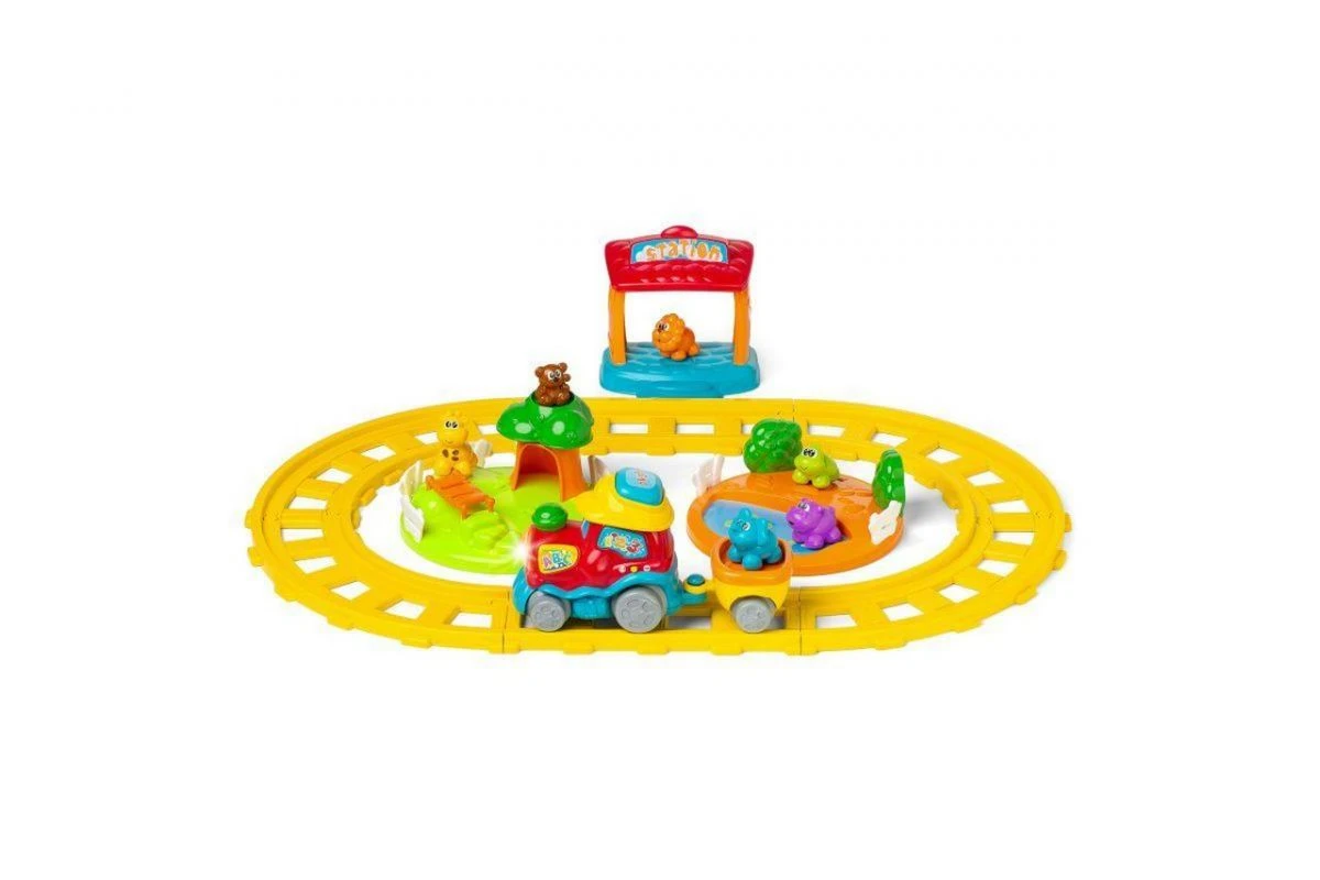Le train motorisé fait le tour de la piste avec de vrais bruits, des chansons et apprend à l’enfant des informations sur les 6 animaux.