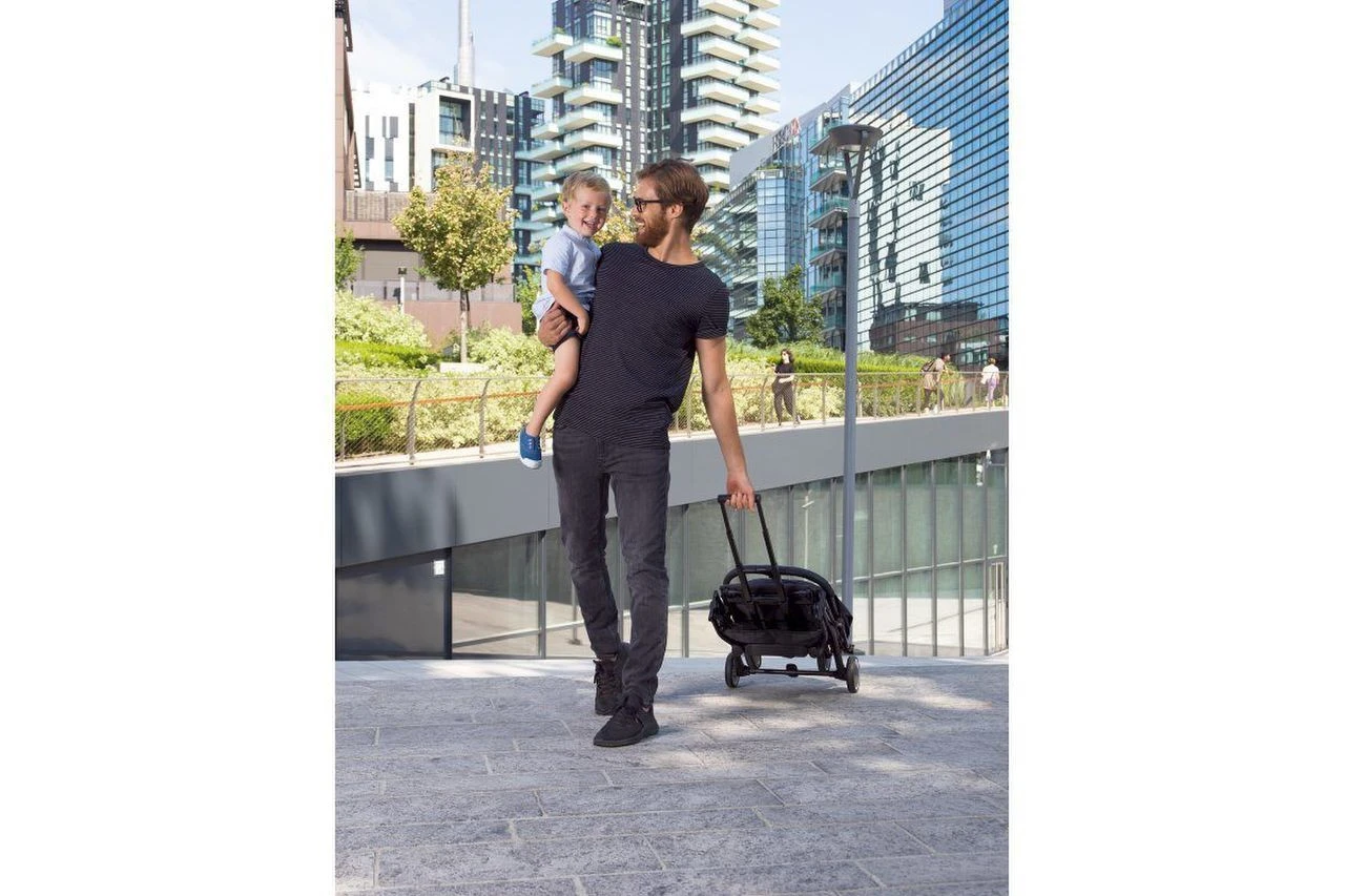 Trolley Me est la nouvelle poussette compacte de Chicco qui se transforme d’un simple geste en trolley : plus besoin de porter la poussette pliée, elle roule comme une valise à roulettes.