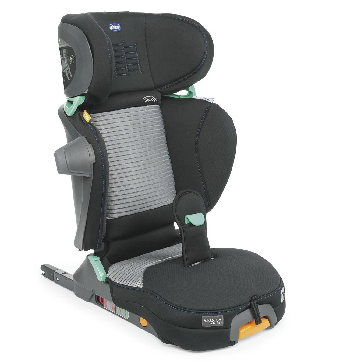 Le Fold&Go i-Size est équipé du système « Fit-Kit », des étiquettes simples et claires qui rappellent quelles sont les conditions d’utilisation du siège auto et du réducteur, s’il faut le placer face ou dos à la route et comment bien attacher l’enfant.