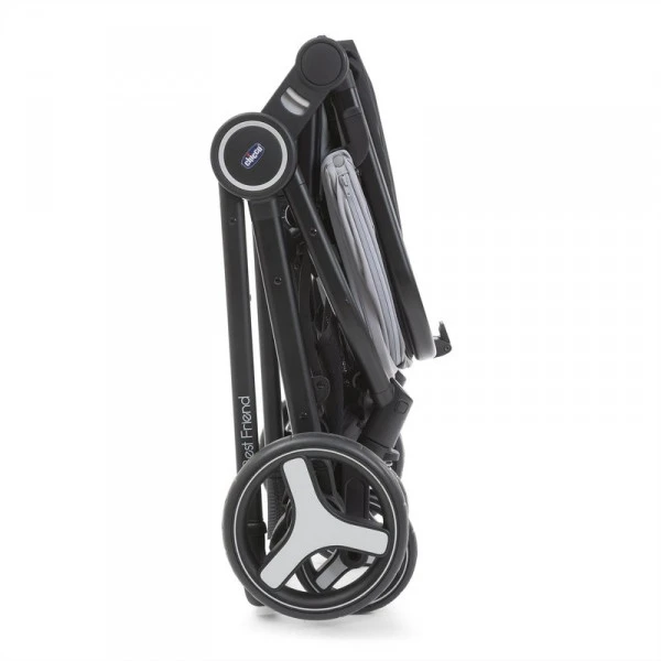 La poussette se ferme d’une seule main, même avec l’assise installée, pour une praticité sans égal. L’assise peut être retirée pour la rendre encore plus compacte.
